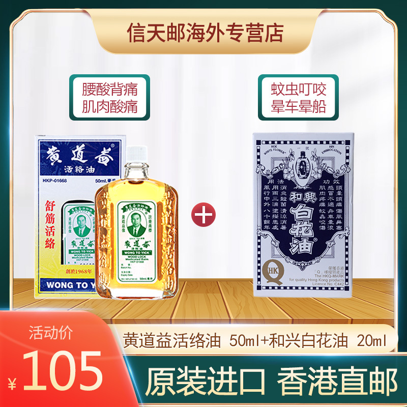 黄道益活络油50ml 和兴白花油ml 香港直邮原装进口腰酸背痛肌肉酸痛跌打损伤晕车晕船蚊虫叮咬居家常备视频介绍 黄道益活络油